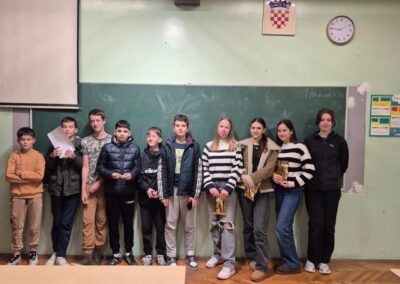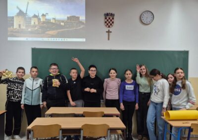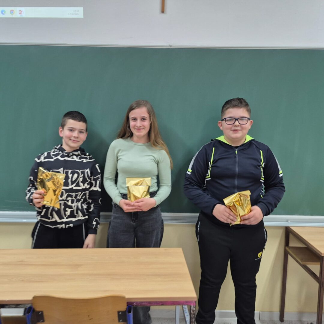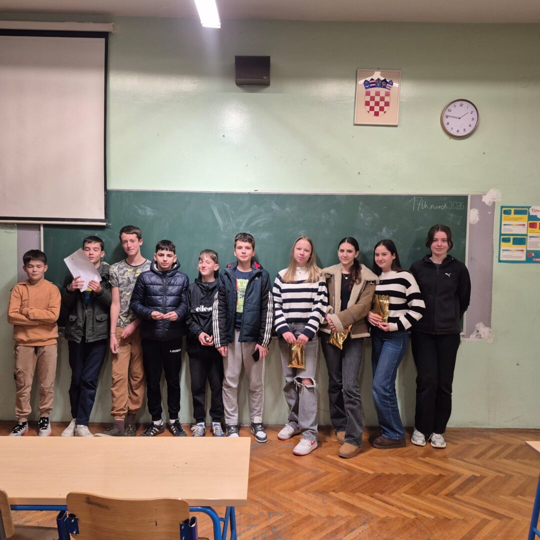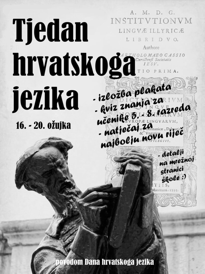 Ove smo godine odlučili obilježiti Dane hrvatskog jezika koji se svake godine održavaju u tjednu kad je 17. ožujka u sjećanje na objavljivanje Deklaracije o nazivu i položaju hrvatskog književnog jezika. Naši su učenici pripremili izložbu plakata koju možete pogledati u atriju škole, a u utorak, 17. ožujka, organizirali smo kviz znanja za učenike petih, šestih, sedmih i osmih razreda. Učenici su pokazali zavidno znanje, a neki su dobili i slatka iznenađenja (fotogalerija u nastavku).
