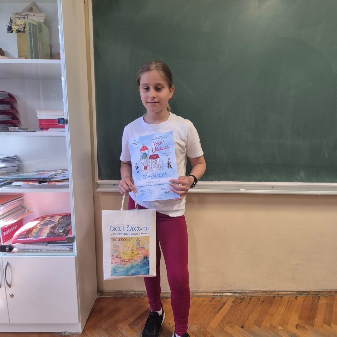 U subotu, 25. travnja, naši su učenici sudjelovali u manifestaciji “Dica i ČAkavica” u organizaciji OŠ Bijaći i DV Trogir. Recitacijom Maslina predstavili su se učenici 1.c razreda: Tonka Mihanović, Ivan Bralić, Mihaela Pućo, Ante Dadić i Marko Rabadan pod mentorstvom učiteljice Ranke Tomaš. Učenica 5.a razreda Marija Ivić izvela je recitaciju Posteja , a mentorica je bila učiteljica Josipa-Verena Marinović. Naši učenici podsjetili su se riječi svojih predaka i tako osvijestili važnost očuvanja posebnosti našeg govora.