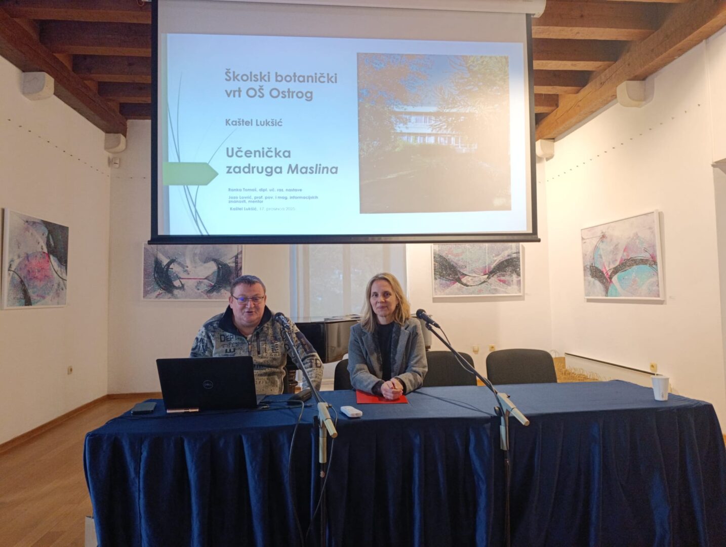 Školski botanički vrt OŠ Ostrog i UZ Maslina, Ranka Tomaš, dipl. uč. raz. nas. OŠ Ostrog, Kaštel Lukšić i Jozo Lovrić. prof. pov. i mag. informacijskih znanosti mentor, OŠ Ostrog, Kaštel Lukšić