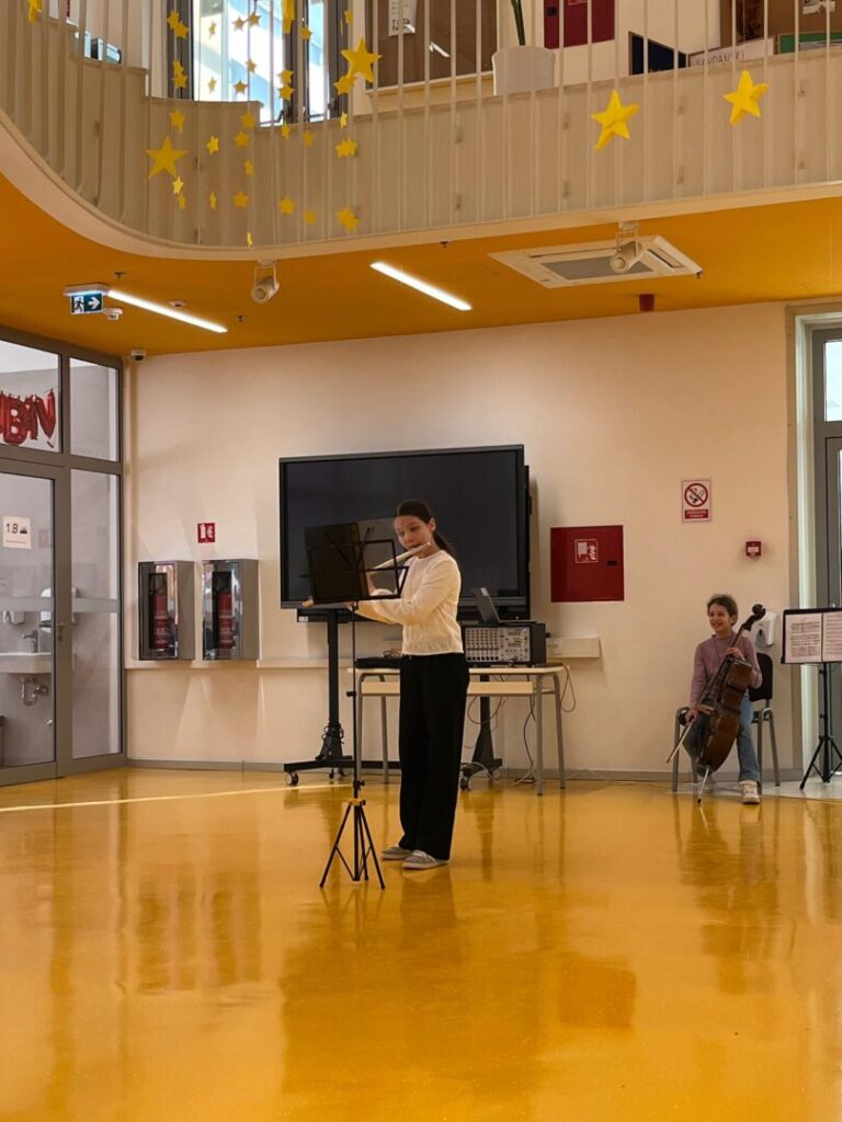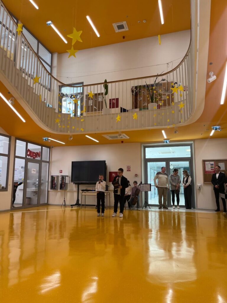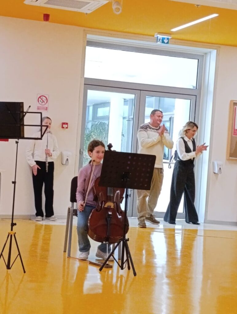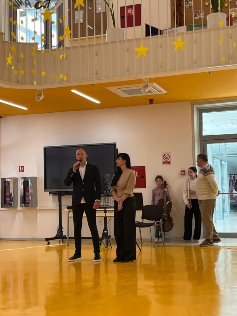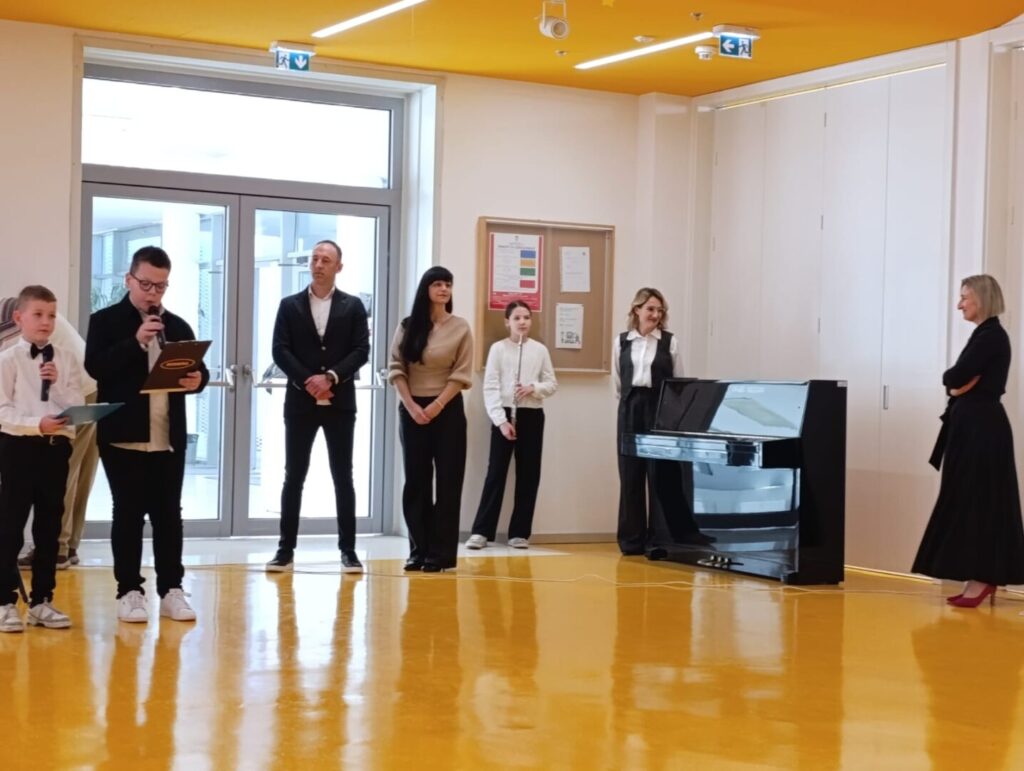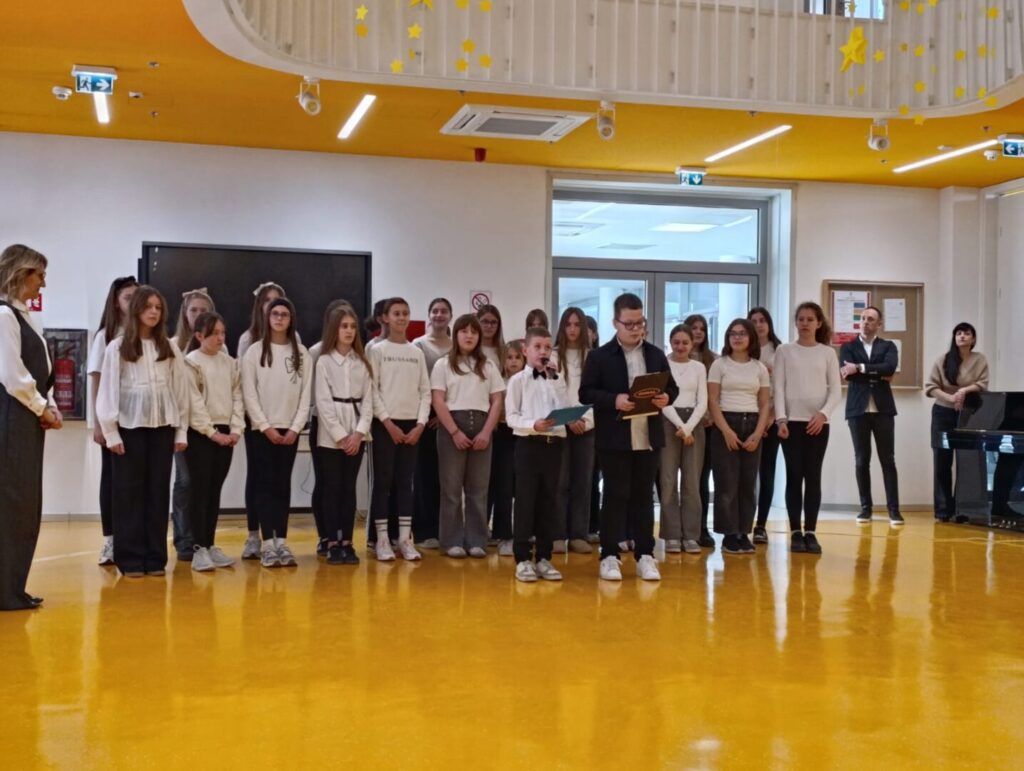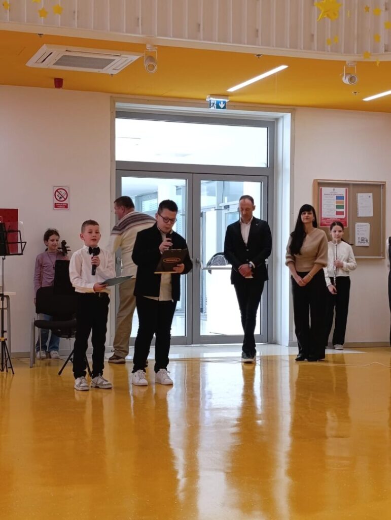 Program je započeo u ugodnoj i svečanoj atmosferi nastupom dječjeg zbora OŠ Pujanki koji je izveo himnu Republike Hrvatske i himnu svoje škole, nakon čega su uslijedili pozdravni govori ravnatelja Dijane Vinčić i Branimira Glavinovića. U glazbenom dijelu programa nastupile su i naše učenice: Loreta Petrušić na violončelu (Rudolf Matz: Andante) te Paulina Burić na flauti (Domenico Cimarosa: Andantino).